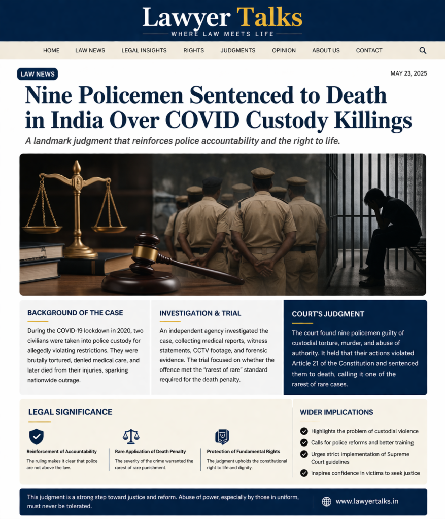 A major and uncommon occurrence in the Indian criminal justice system just took place, in which nine policemen were condemned
