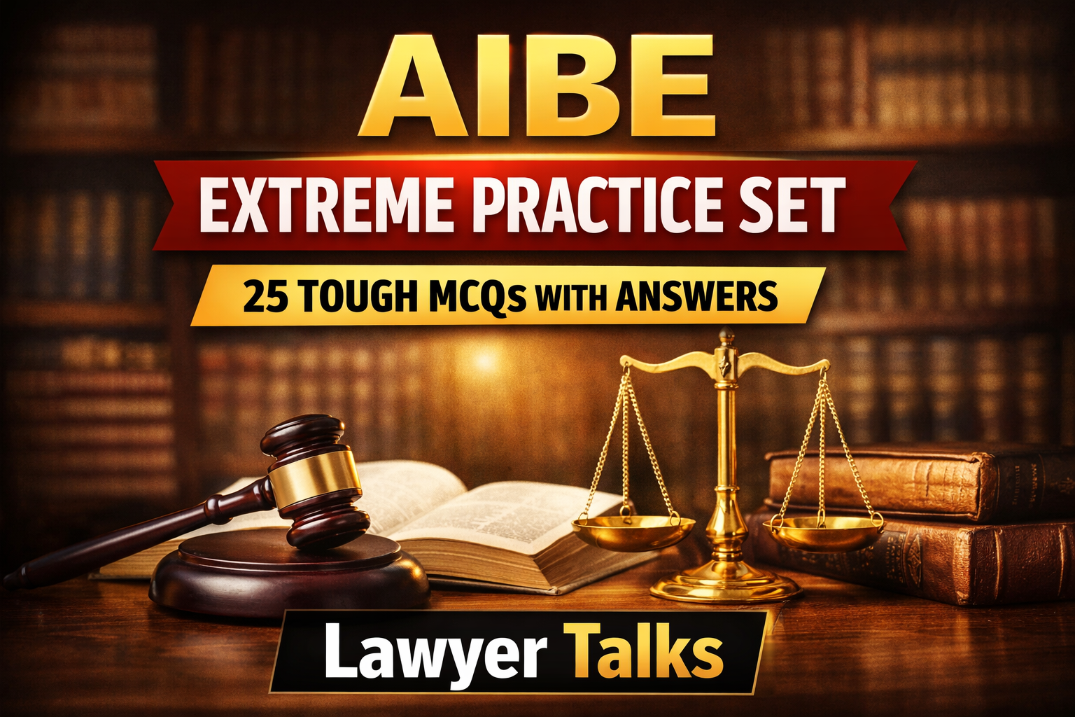 This AIBE Extreme Practice Set contains 25 of the toughest multiple-choice questions designed for comprehensive revision of key legal subjects including Constitutional Law, Criminal Law, Civil Procedure, Evidence, Contract Law, Tort Law, Family Law, and Professional Ethics.