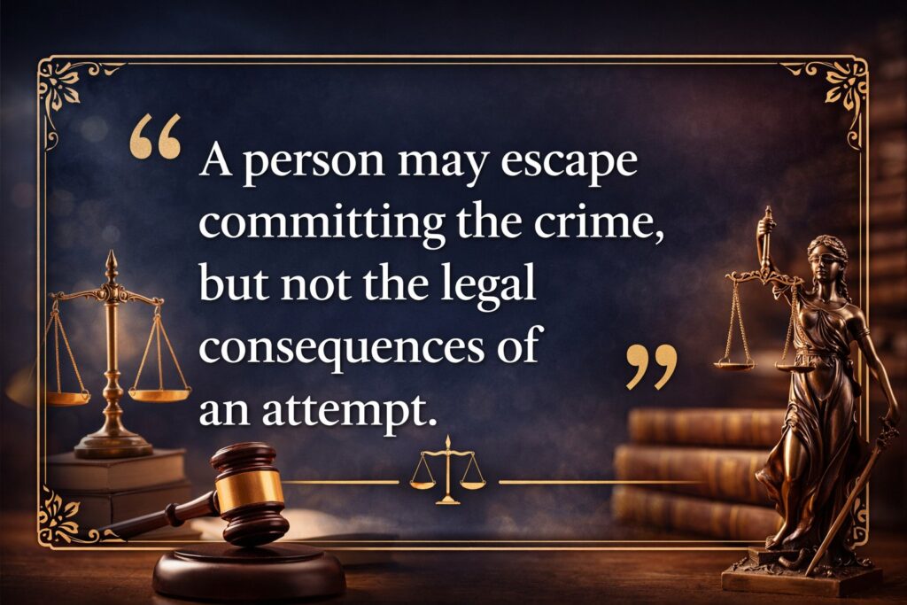 The concept of attempt plays an important role in criminal justice because it prevents individuals from escaping punishment simply because the crime was not completed. If a person shows clear intention and takes steps toward committing a crime, the law may still hold them responsible.