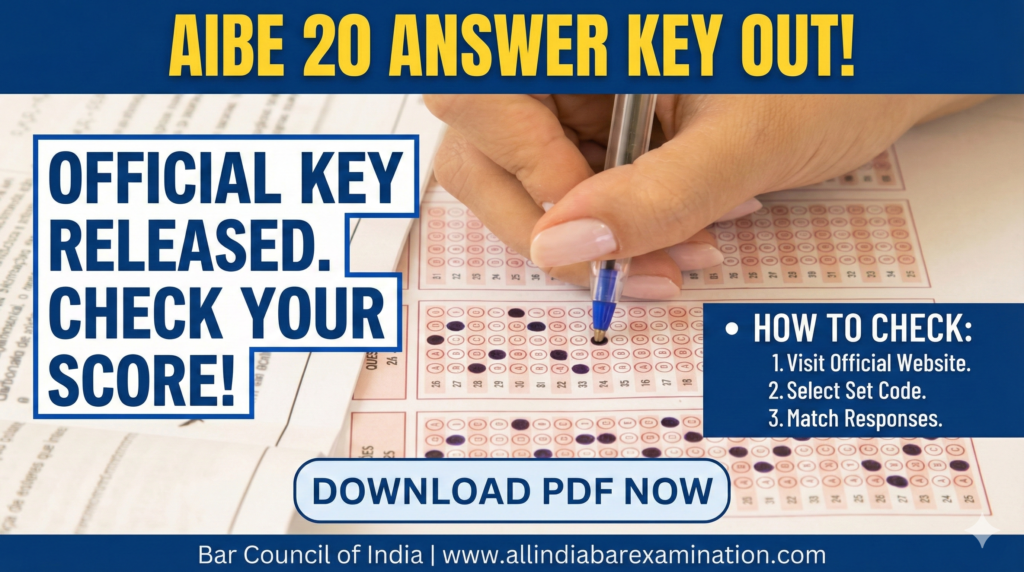 बार काउंसिल ऑफ इंडिया (BCI) ने All India Bar Examination (AIBE) XX (20) की फाइनल आंसर-की (Final Answer Key) आधिकारिक