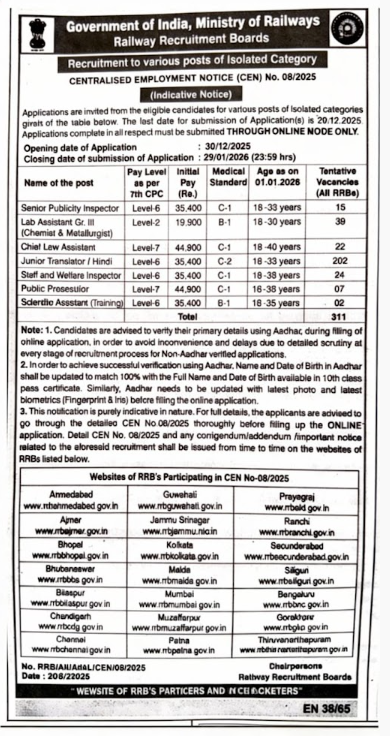Once the Ministry of Railways releases the official notification, it will be made available. Please stay updated for the official announcement.