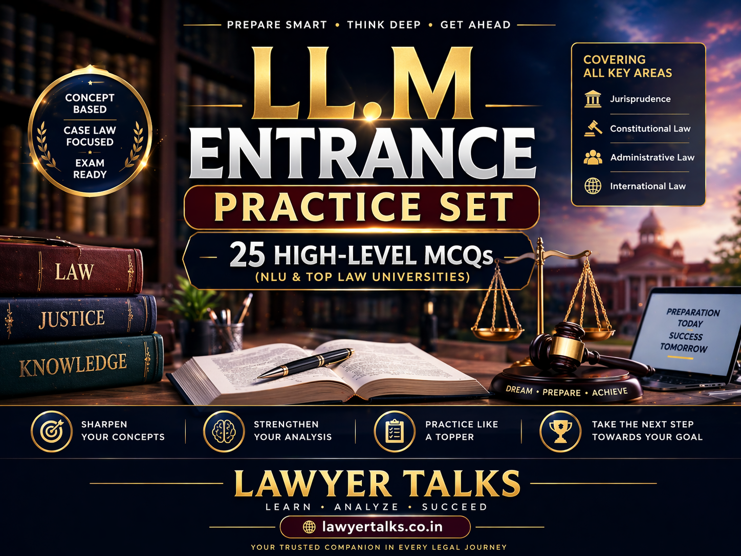 Prepare effectively for LL.M entrance exams with this advanced MCQ practice set consisting of 25 high-quality questions. This set integrates legal theory, landmark case laws, and core constitutional concepts, ensuring comprehensive syllabus coverage.