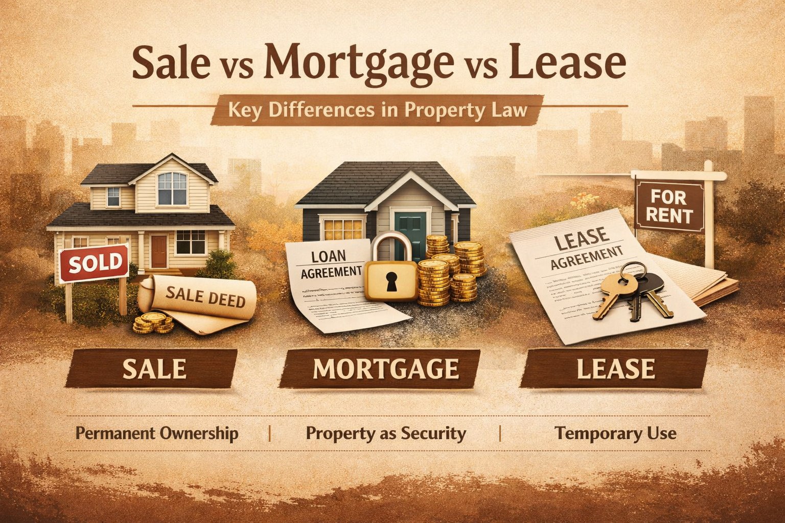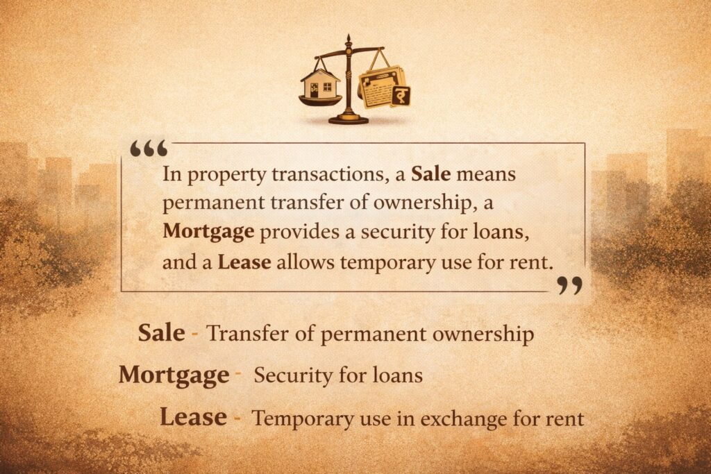 In this article, we will clearly understand the difference between Sale, Mortgage, and Lease in simple terms.